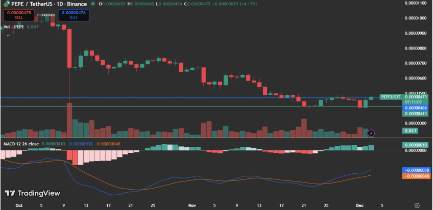 PEPE突破关键阻力位,暗示可能出现看涨趋势转变。