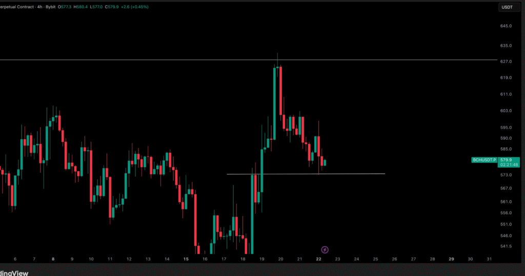 570美元支撑位是BCH的关键位置,标志着近期价格走势的底部区域,并具备反弹潜力。若能成功维持该支撑,可能为价格复苏提供契机。交易员正密切关注这一水平,因其将决定BCH的下一步方向。