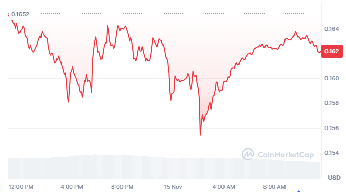 两个关键技术位正引导市场走向:在0.156-0.157美元区间,买家屡次做出反应形成短期需求区,每次盘中下跌后均产生强劲反弹,证实该下边界存在稳定承接。上方0.164-0.1645美元区域则构成临时阻力,价格多次测试该区域但缺乏持续上行动能。反复试探帮助界定了近期主导市场的温和波动范围。