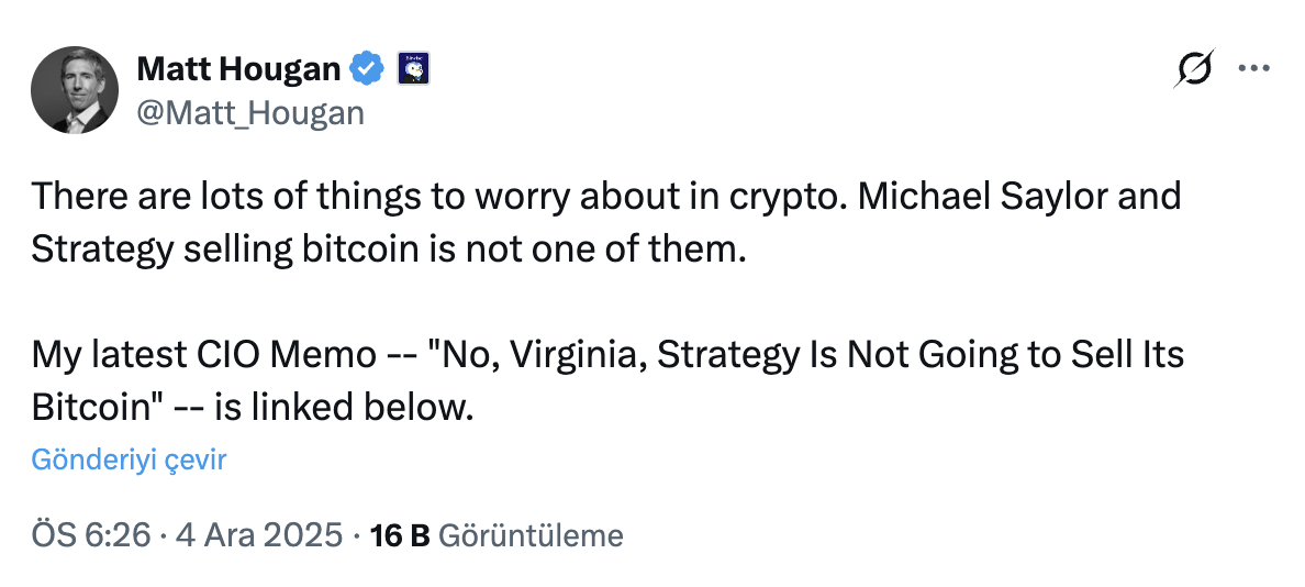 比特币市场紧张情绪升温,有猜测称因股价下跌,微策公司可能被迫出售其巨额比特币储备。Bitwise首席投资官Matt Hougan断然否认了这些猜测,称其"完全错误"。据Hougan表示,微策市值低于净资产值并不会迫使该公司出售其比特币资产。
