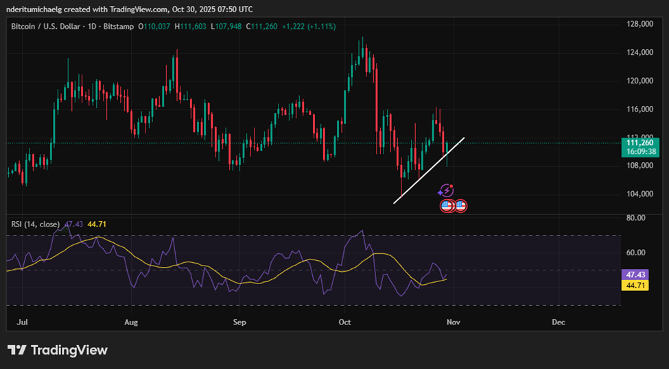 比特币(BTC USD)价格跌破11万美元原因解析及11月走势展望