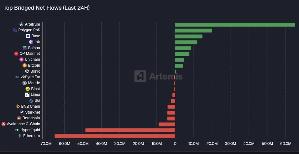 根据聚合器数据,跨链桥接总锁仓价值已达96.2亿美元,较前一日96亿美元继续增长,显示本周资金持续净流入。分析师认为稳定的资金流入表明用户并非追逐短期激励后撤离。
