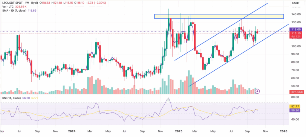 莱特币未来走势将取决于其对140美元阻力位的反应:有效突破可能延续中期涨势,而遇阻回落或触发大规模调整。市场参与者正同步关注图表形态与整体投资者情绪,以判断下一阶段决定性方向。