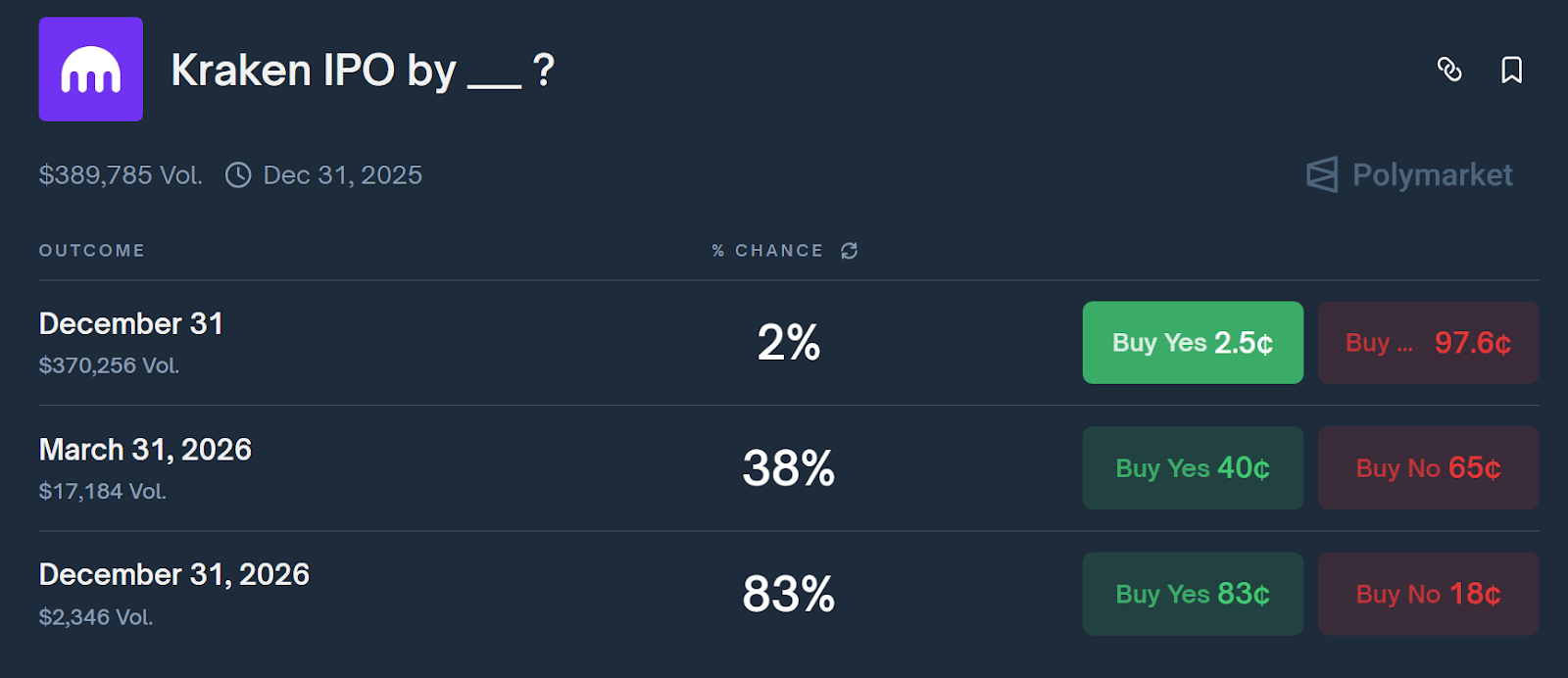 在时间维度上,市场倾向于认为其将在2026年第二季度后上市。这些预测既反映出市场对Kraken基本面的信心,也体现了公开市场对原生加密企业估值体系的成熟化趋势。