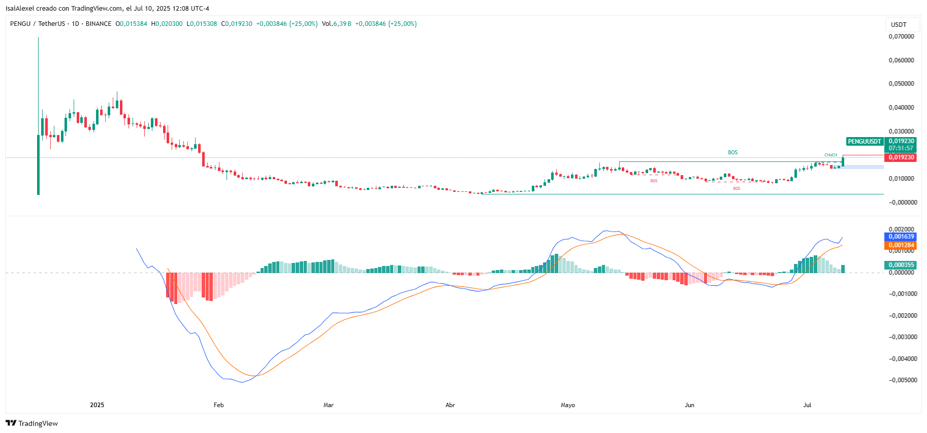 "如果你还在忽视$PENGU就赶紧清醒吧!这是教科书级别的牛市回测。八月前达0.060美元只是开始,一旦ETF获批,天知道它能飞多高。"——Ali (@ali_charts) 2025年7月9日