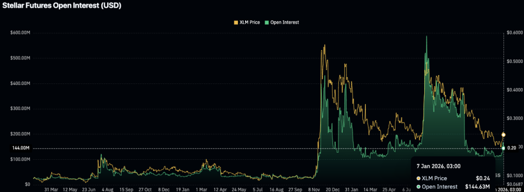 尽管经历涨跌,XLM期货的未平仓合约也揭示了市场的不确定性。未平仓合约一度接近6亿美元的峰值,但目前已降至1.4463亿美元。