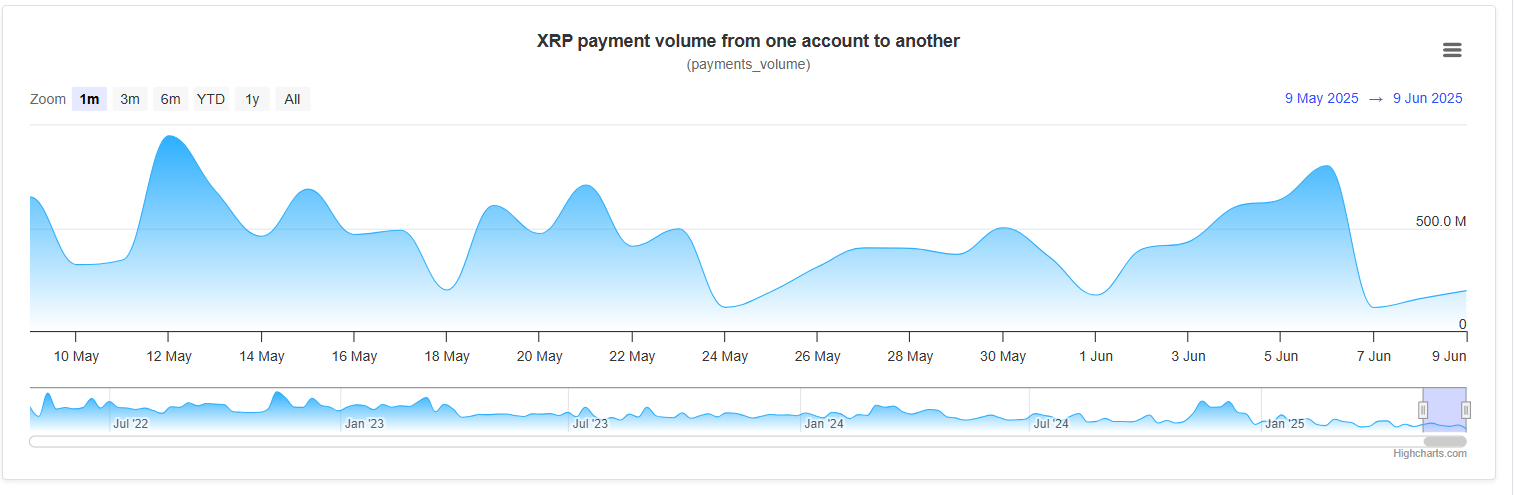 在5月9日至6月9日期间,瑞波币链上交易量实现数倍增长,多次单日交易额逼近5亿美元关口。虽然随后出现的急剧下降看似市场降温,但对于瑞波币这类高流动性资产而言,此类量能压缩往往预示着爆发性反弹的前兆。