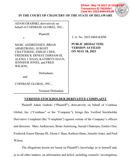 股东于2023年提起衍生诉讼,指控公司董事利用机密信息避免了超10亿美元损失。诉状称内部人士共计出售了逾29亿美元股票。诉讼焦点集中于Coinbase选择直接上市的方式,该方式避免了新股发行和股权稀释,同时绕过了限制即时售股的锁定期。