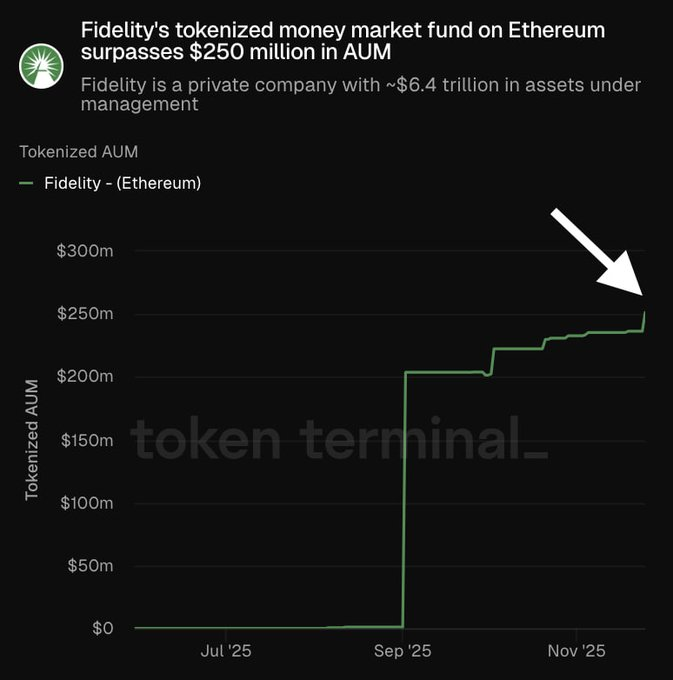 机构采用亦持续推进,富达在以太坊上发行的代币化货币市场基金资产管理规模突破2.5亿美元。