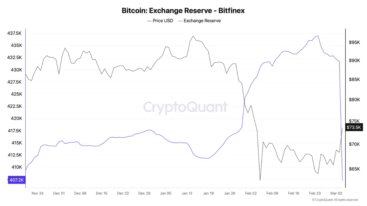 CryptoQuant报告指出,向新地址的单区块交易通常对应交易所的财政管理、钱包重组或储备迁移。Bitfinex未就此事发布任何官方声明确认或否认内部重组。