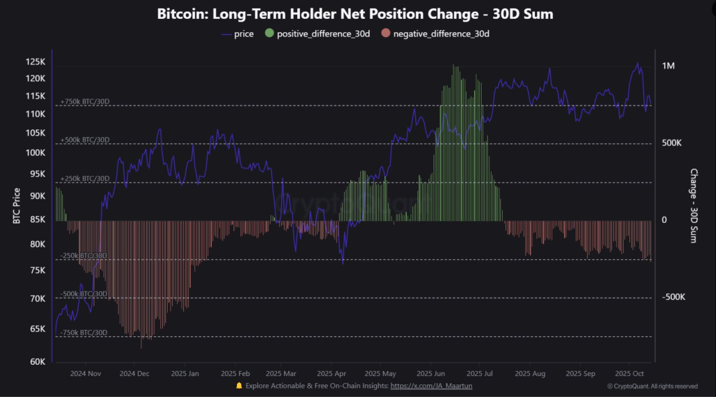 过去30天内,LTH已减持265,715枚BTC,创2025年1月以来最大月度流出量。分析师JA_Maartun指出,此次抛售紧随5-7月期间的集中吸筹,当时累计增持超75万枚BTC。