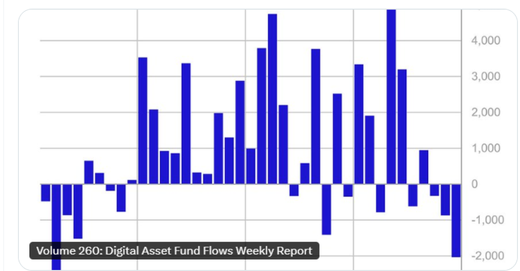 加密货币市场近期出现20亿美元的交易所交易产品(ETP)资金外流,成为近几个月来最大规模的撤资之一。加密货币ETP是跟踪加密货币价格的投资工具,让投资者无需直接持有数字资产即可获得风险敞口。