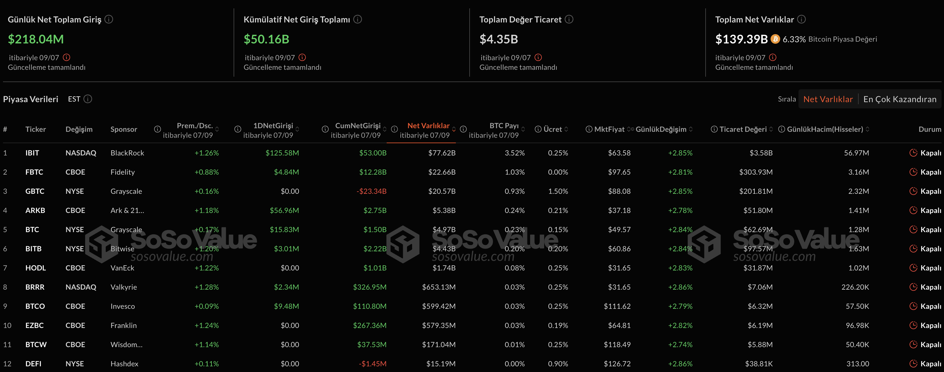 2025年7月9日现货比特币ETF数据