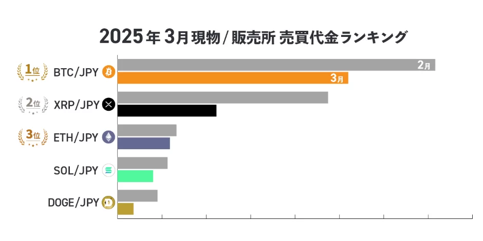根据统计数据,日本投资者的加密货币偏好依次为:比特币(BTC)位居第一,XRP排名第二,以太坊(ETH)位列第三,Solana(SOL)排名第四,狗狗币(DOGE)位居第五。