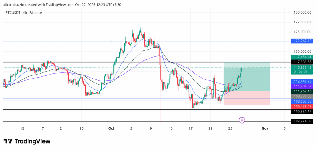112500美元支撑位至关重要,118000美元阻力位是突破关键。若能突破118000美元,则有望挑战133911美元的延展目标位。
