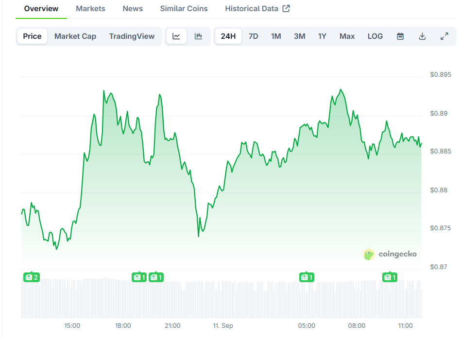 0.81美元支撑位被视为多头防线,守住该位置则分形模式有效。1.33美元阻力位是突破1.86美元前的重要观察点。CoinGecko数据显示24小时交易量超12亿美元,表明交易者正为后续行情布局。