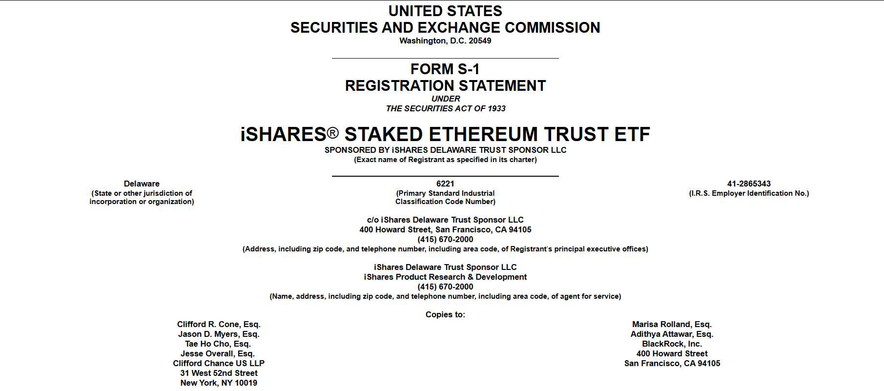 贝莱德申请质押版ETH ETF成为当日另一重要进展。iShares以太坊质押信托的推出将带来具备质押功能的ETH ETF,此举打破了Gensler最初的反对立场。该公司已提交S-1注册文件,素来只对预期可达成的步骤采取行动,因此该产品成功面世的可能性较高。