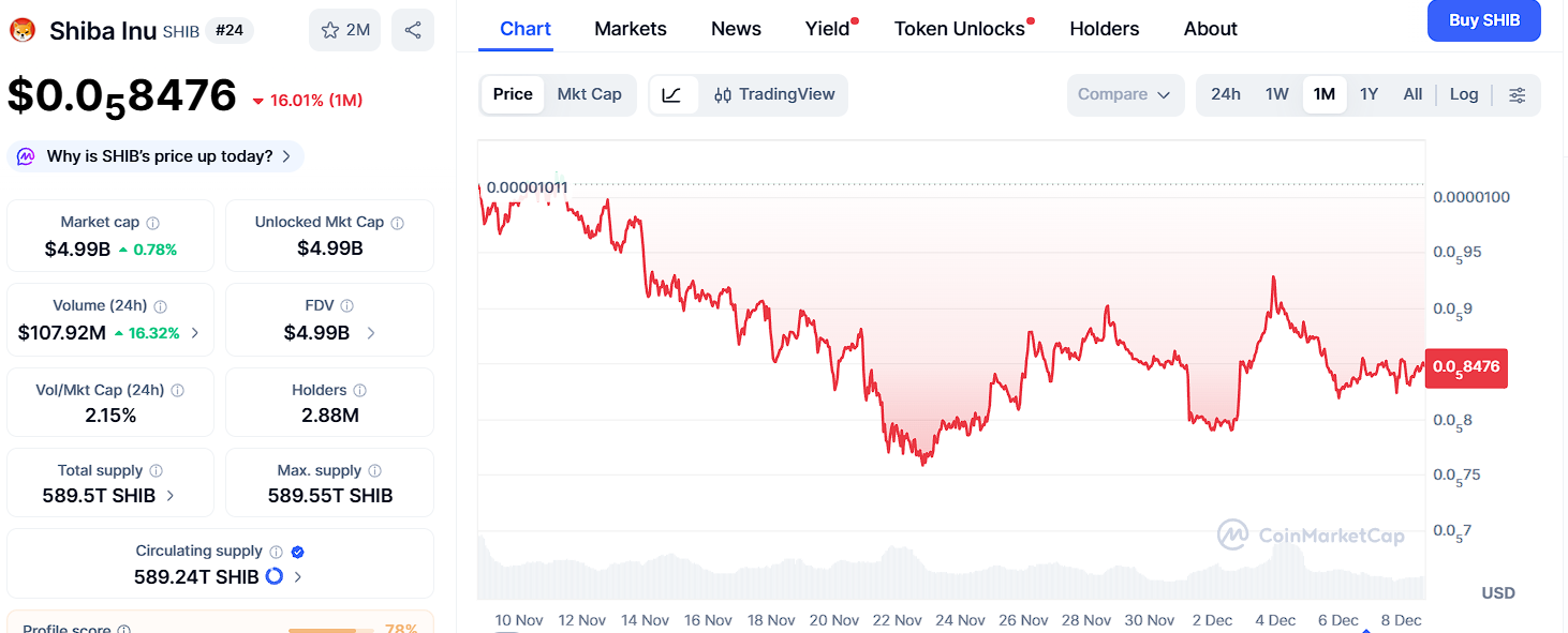 Shiba Inu目前交易于0.000008476美元附近,构筑了由多重需求区域支撑的健康整固结构。0.000008320美元支撑位稳固短期趋势,更深层的0.000008120美元与0.000007900美元区域则强化持有者长期信心。当价格接近0.000008720美元阻力位后,SHIB开始构建看涨延续形态,上方0.000008950美元与0.000009210美元关口历来会激发动量驱动上涨。