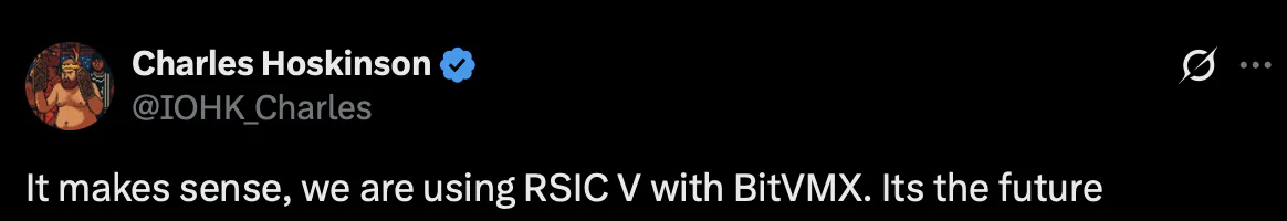 这场简短的交流发生在周日,Buterin在以太坊魔术师论坛上发布了他的"长期L1执行层提案"之后。Hoskinson在X平台上做出了简洁而有力的回应:"这很有道理,我们正在使用RISC-V与BitVMX。这就是未来。"