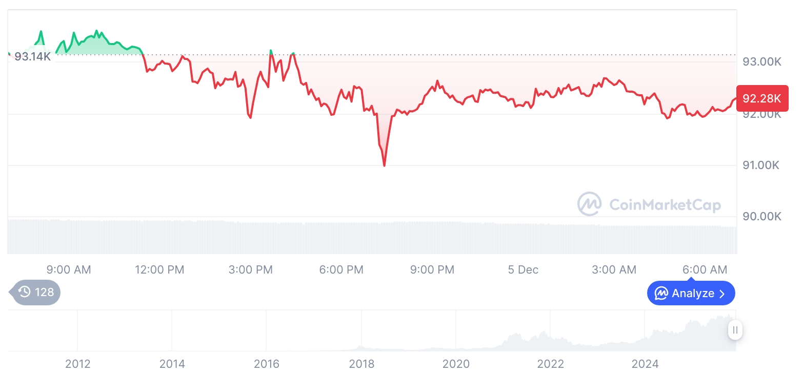 斯奈德指出,虽然通常1月份投资者会因年初调整资产配置而向比特币ETF注入资金,但这种资金流向仍取决于整体市场情绪。比特币曾在10月5日攀升至125,100美元高点,随后进入下跌通道,并在10月10日引发规模达190亿美元的加密货币市场清算。根据CoinMarketCap数据,目前比特币交易价格为92,150美元,近30日内跌幅约10%。