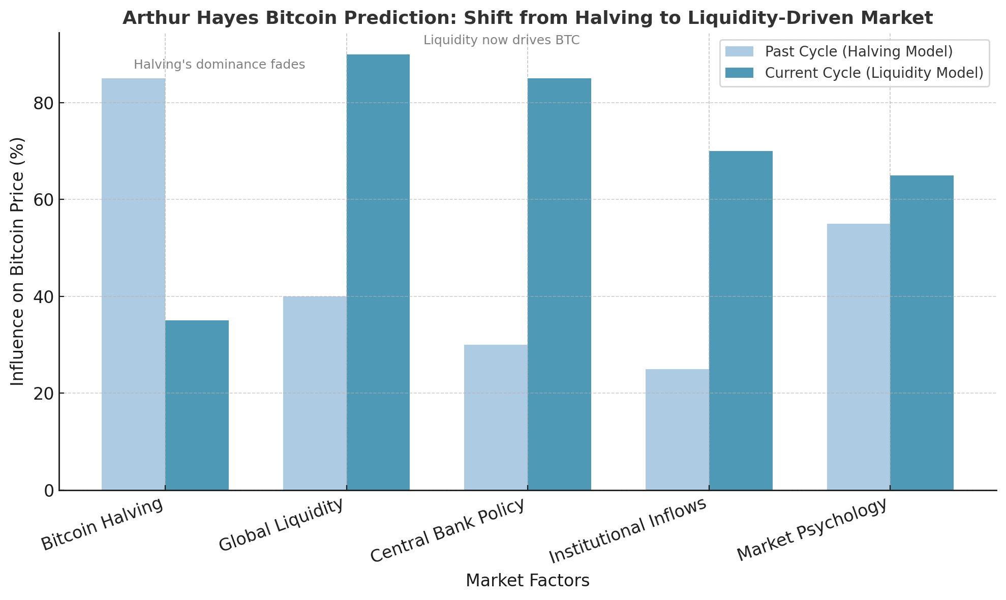 亚瑟·海斯(Arthur Hayes)的最新比特币预测在加密领域掀起轩然大波。这位直言不讳的BitMEX联合创始人兼Maelstrom首席投资官认为,主导比特币十余年的四年周期理论已正式失效。他提出全球流动性和央行政策才是推动比特币走势的真正引擎,这一观点直接挑战了以减半为核心的传统认知模型。"减半不再是比特币的心跳,流动性才是"——这番宣言在分析师、交易员和宏观经济学家中引发激烈辩论。