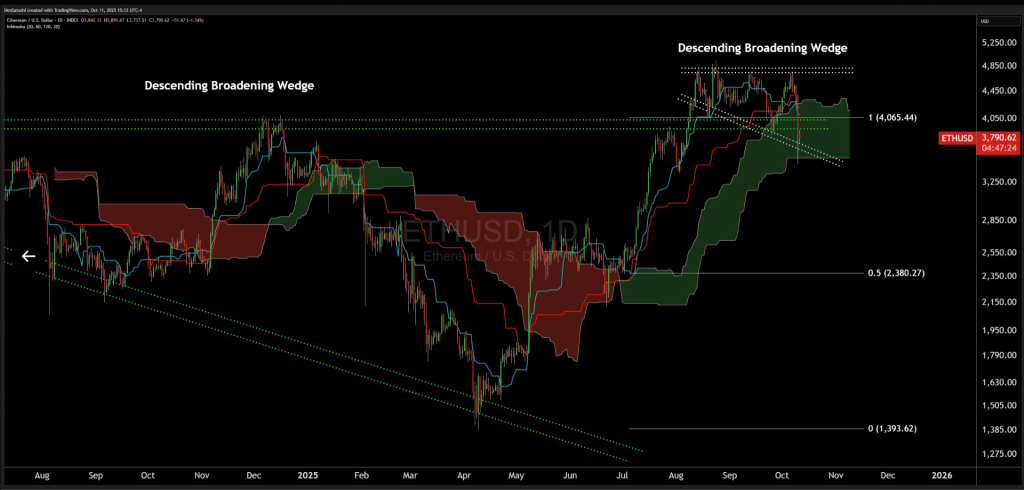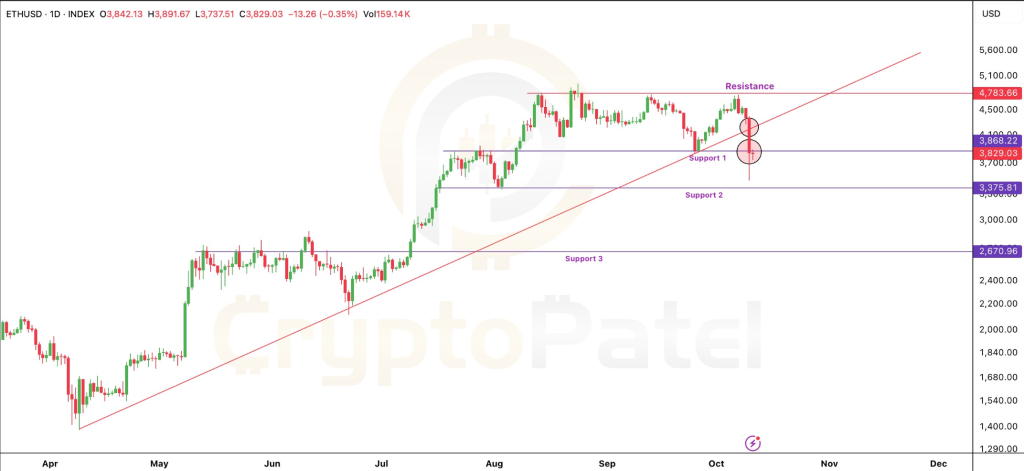 短期反弹可能测试4250美元阻力位(21日与50日均线交汇处),突破后或打开通往5000美元的上行通道。若当前支撑失守,3000美元将成为关键防守位。前期3900美元支撑已转为阻力,预示近期仍有下行风险。