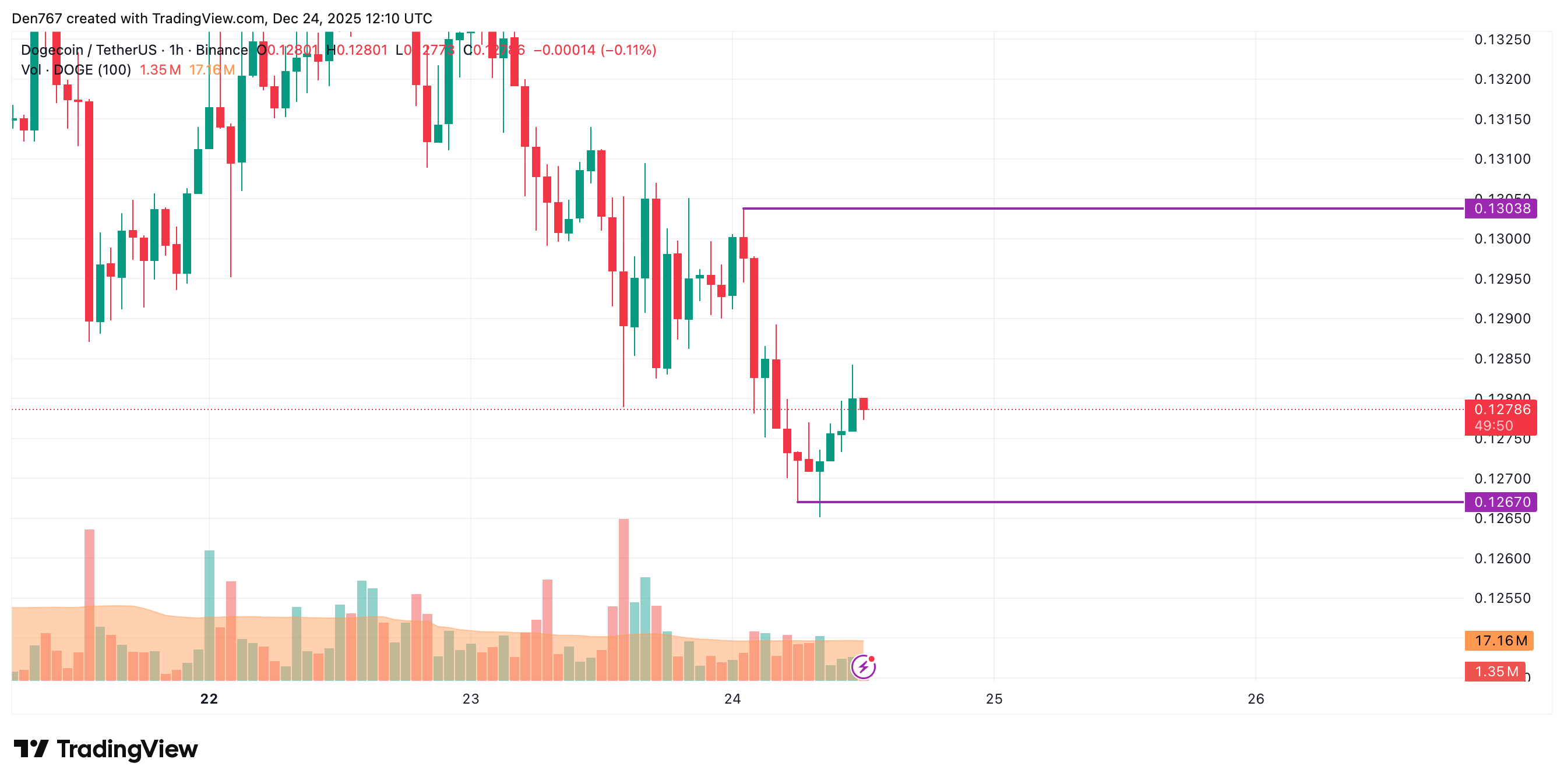 DOGE汇率在触及0.1267美元局部支撑位后出现反弹。