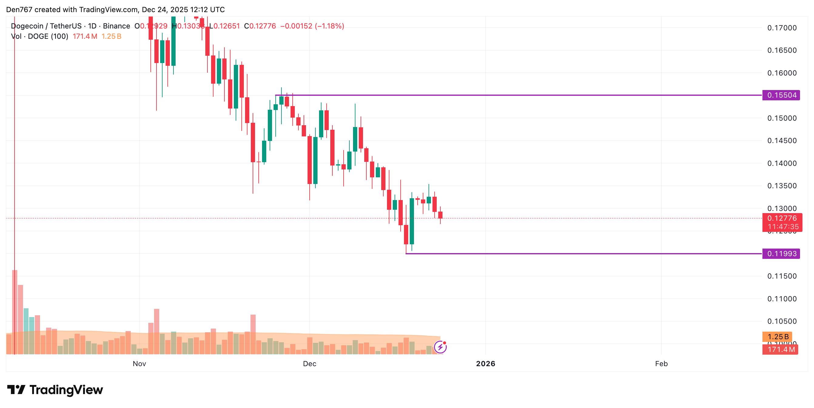 但若多头未能重掌主动权,且日线收盘价维持在该位置附近,交易者可能明日将见证价格进一步下探至0.12550美元区间。