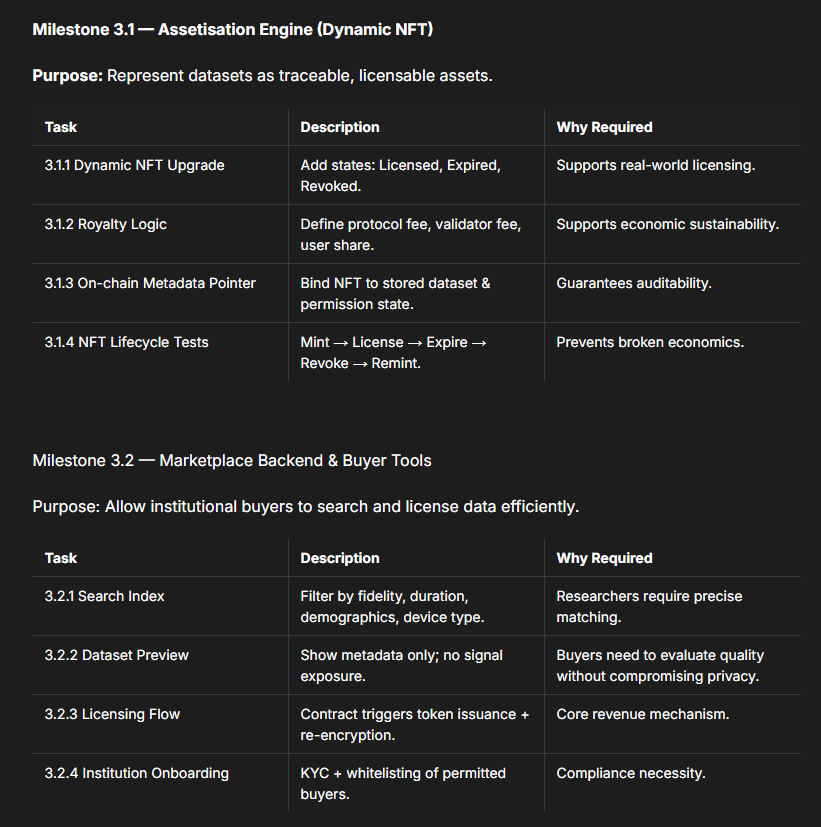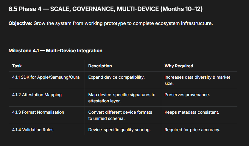 第五章定义了将睡眠数据转化为可验证、受许可且可交易资产所需的架构。本章旨在将该架构转化为一份详细、可执行且相互关联的开发路线图,明确各项原子任务、责任与依赖关系。