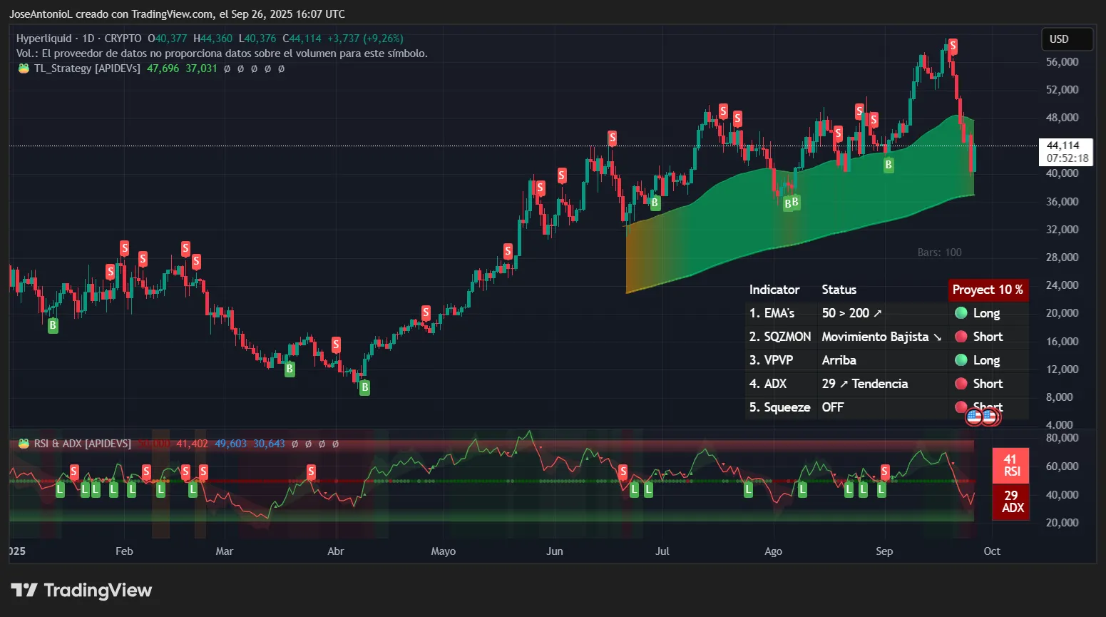 从技术层面看,HYPE正展现出大型调整可能终结的信号。其相对强弱指数(RSI)目前位于41,虽处熊市区域,但代币从56美元回调至40美元后,这种RSI读数反而显示健康整理态势。30-45区间的RSI往往被交易员视作买入机会。
