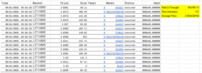 此外,Lighter Assistance Fund也在短期内购入16.579万枚LIT,均价接近3.05美元。
