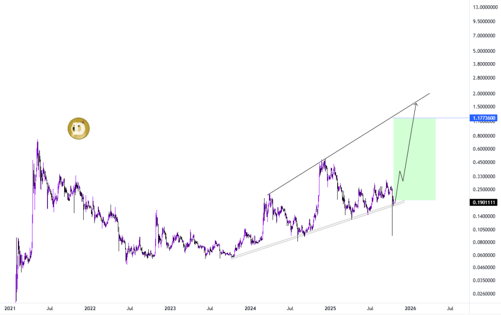 虽然DOGE价格看似平静,但0.20美元下方的筑底过程绝非随机。过去几个月,DOGE多次重新测试相同支撑位,每次都有买盘介入——这是典型的筹码收集特征。当前图表结构与2021年爆发式上涨前的形态惊人相似,这种底部整理持续时间越长,最终突破力度往往越强。