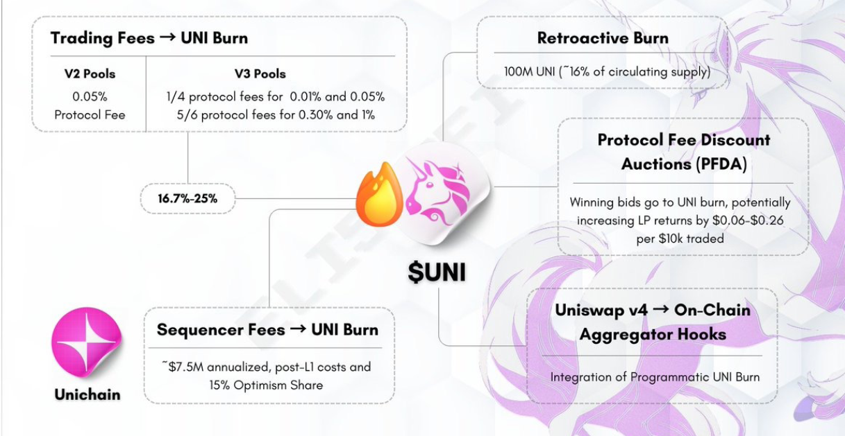 UNI统一提案通过治理投票,启用v2/v3协议费用开关并触发UNI代币销毁