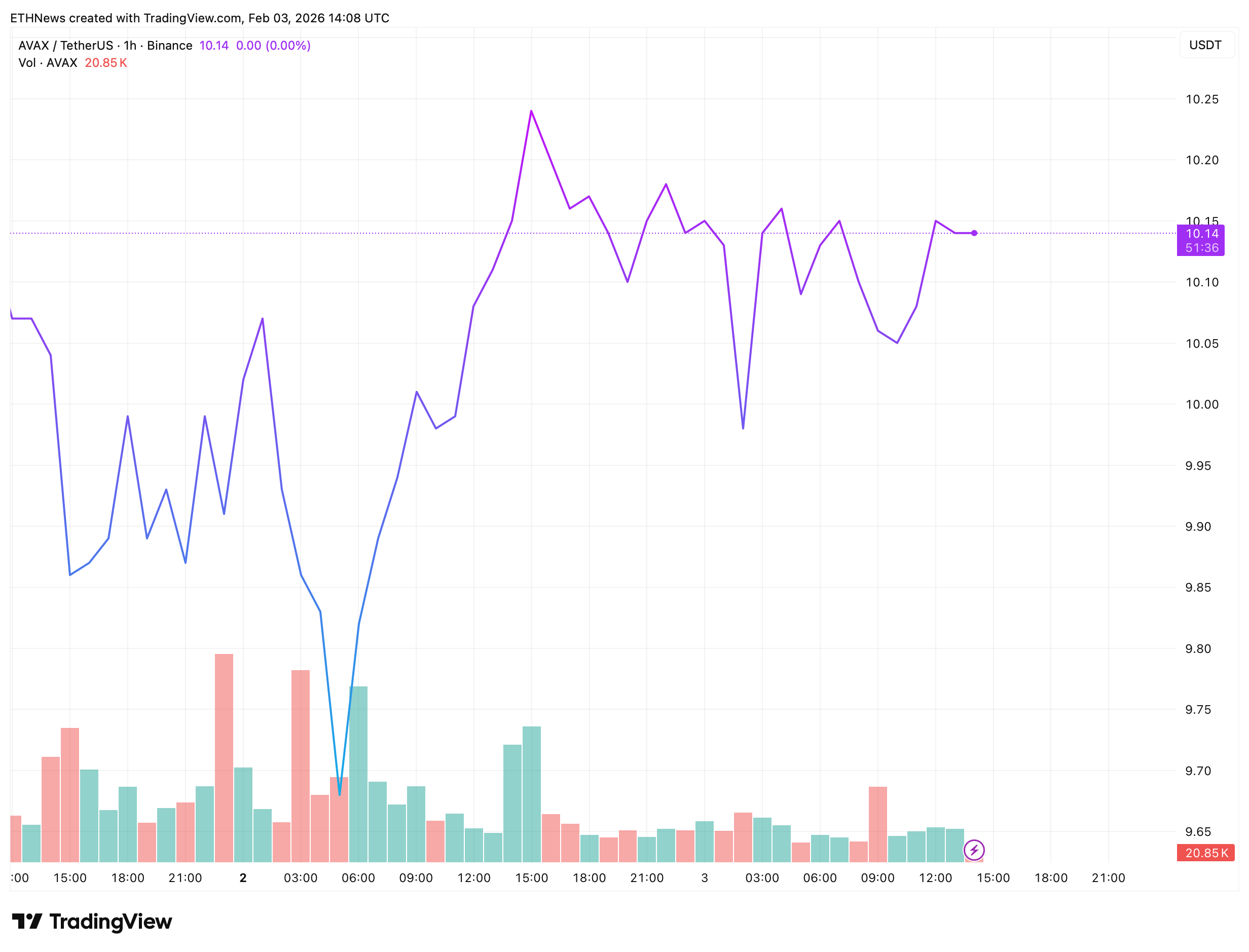 Avalanche在经历长期回调阶段后已显现初步企稳信号,本文撰写时其价格正徘徊于10.14美元附近。自1月中旬高点持续回落以来,AVAX已触及下降通道下轨附近的关键技术区域,此处卖盘动能开始减弱。该结构揭示出自去年11月形成的更广泛看跌通道。