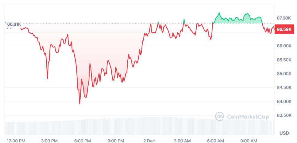 在12月1日跌破84,000美元后,比特币在当前水平出现反弹,市场预期保持乐观。
