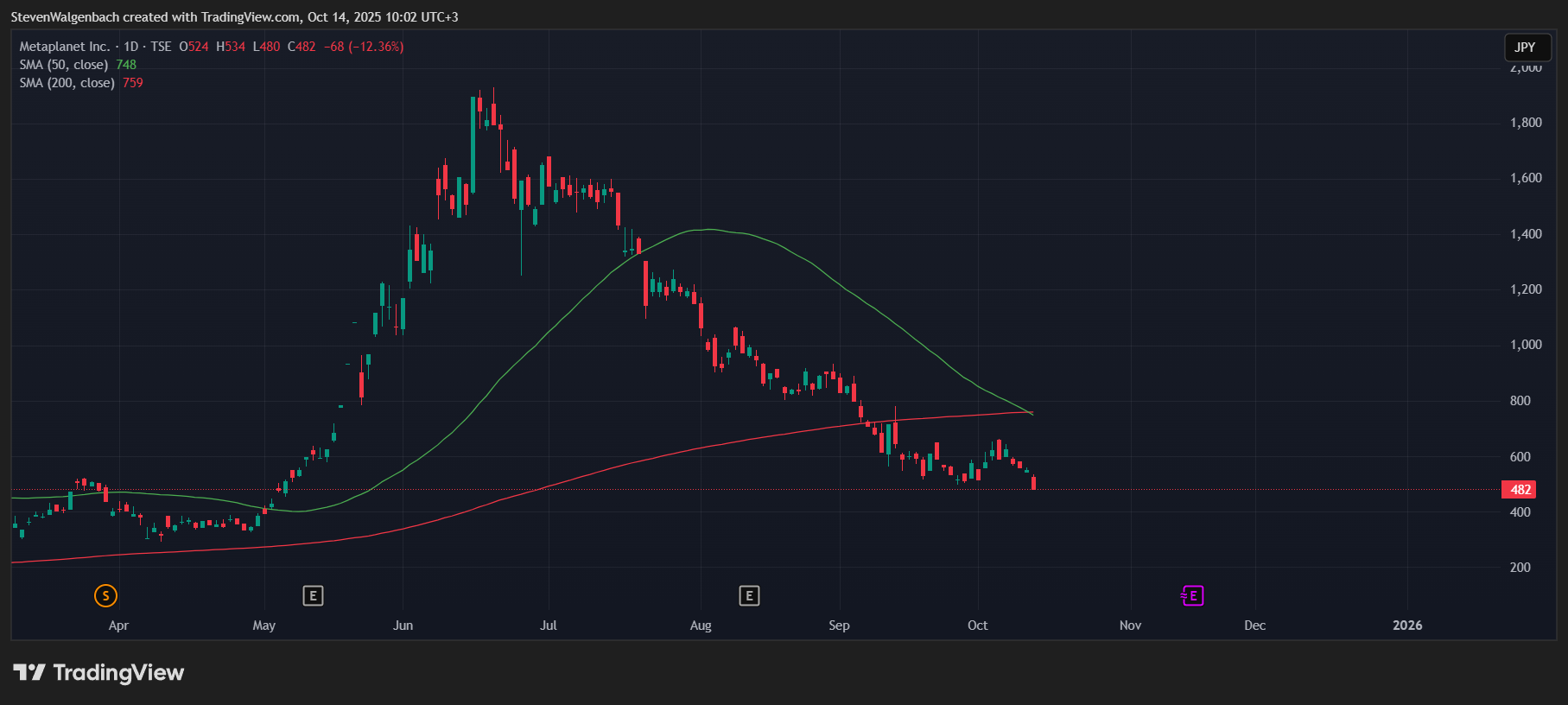 Metaplanet企业价值跌破比特币持仓,股价暴跌12%