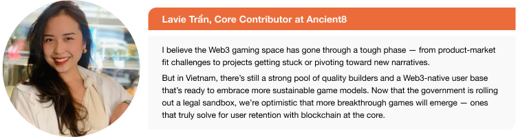 - 经历繁荣与萧条周期后,越南的GameFi领域正趋于成熟,关注质量、长期游戏性和基础设施,不再仅由短期投机驱动。