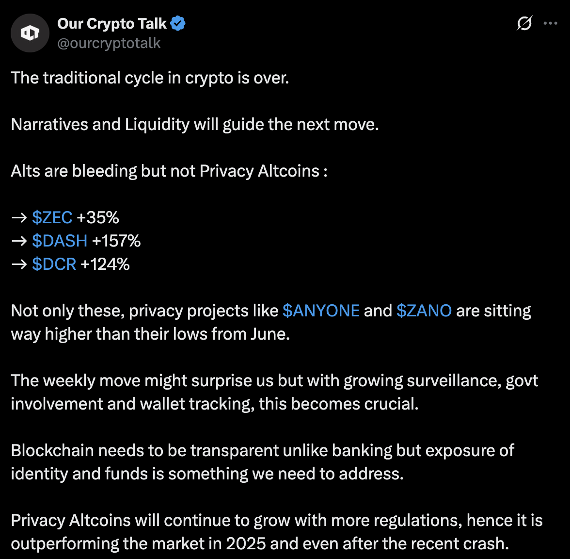 竞争币表现虽参差不齐但前景可期,隐私代币在全球监控担忧背景下逆势上涨。Zcash(日涨15.2%)、Internet Computer(ICP暴涨24%至6.36美元)和Dash(上涨18.6%至124美元)等资产表现优于大盘。