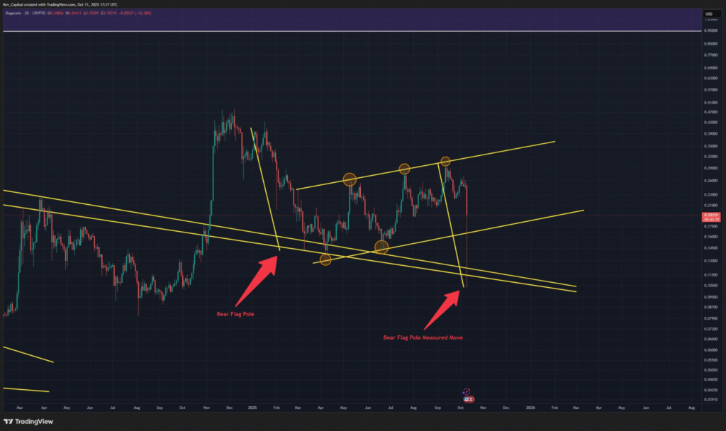 狗狗币熊旗形态破位后数小时内暴跌22%