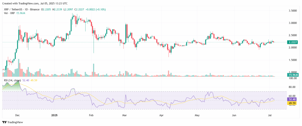 瑞波币日内波动区间为2.21-2.26美元。期货未平仓合约减少2.4%,表明交易者持谨慎态度。当前相对强弱指数(RSI)为52,处于中性区域。