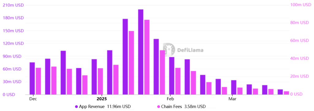 收入下降与模因币交易的整体下滑相吻合,此前模因币交易曾吸引了对该网络的关注。活动转变损害了交易者情绪。