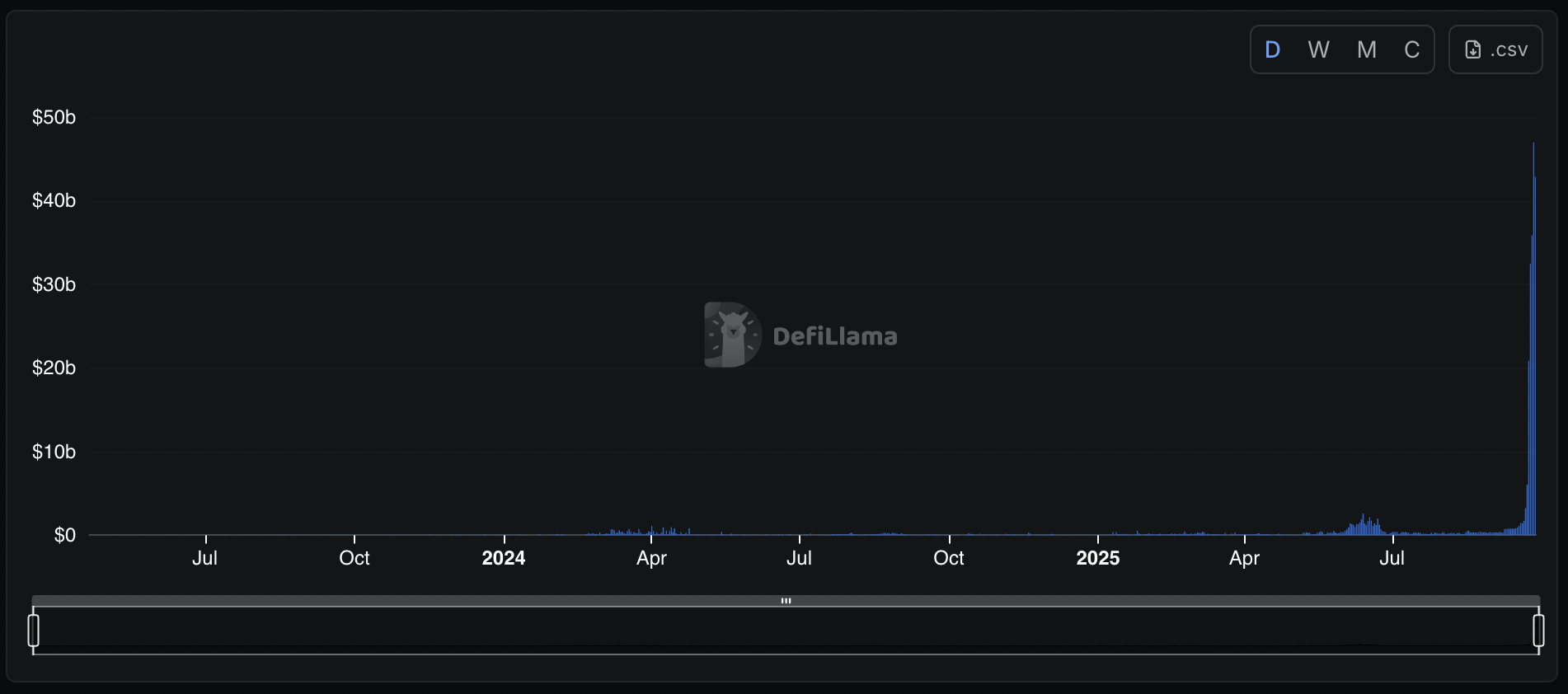 DefiLlama数据显示,Aster以单日420亿美元的交易量碾压同行。这一惊人数据使其稳居行业顶端,甚至超越dYdX、Hyperliquid和GMX等知名平台。由此带来的财务收益与ASTER代币知名度提升,吸引了机构与散户投资者的强烈关注。尤其当ASTER代币价值实现1500%的惊人涨幅后,市场热情被彻底点燃。