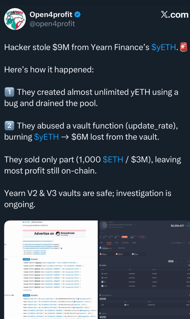 DeFi黑客事件冲击加密货币市场 | 数据来源:X