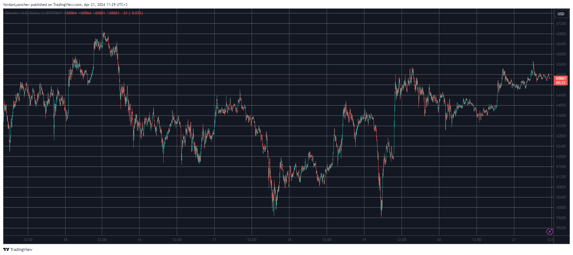 可以说,比特币第四次减半前的一周相当艰难。上周五,比特币从70,000美元上方跌至65,000美元,随后在一天后进一步下挫至61,000美元。尽管周一有所反弹,但本周中期比特币再次遭遇暴跌,周五又因伊朗和以色列局势紧张而继续下跌。在备受期待的减半事件发生前几小时,比特币甚至一度跌破60,000美元。