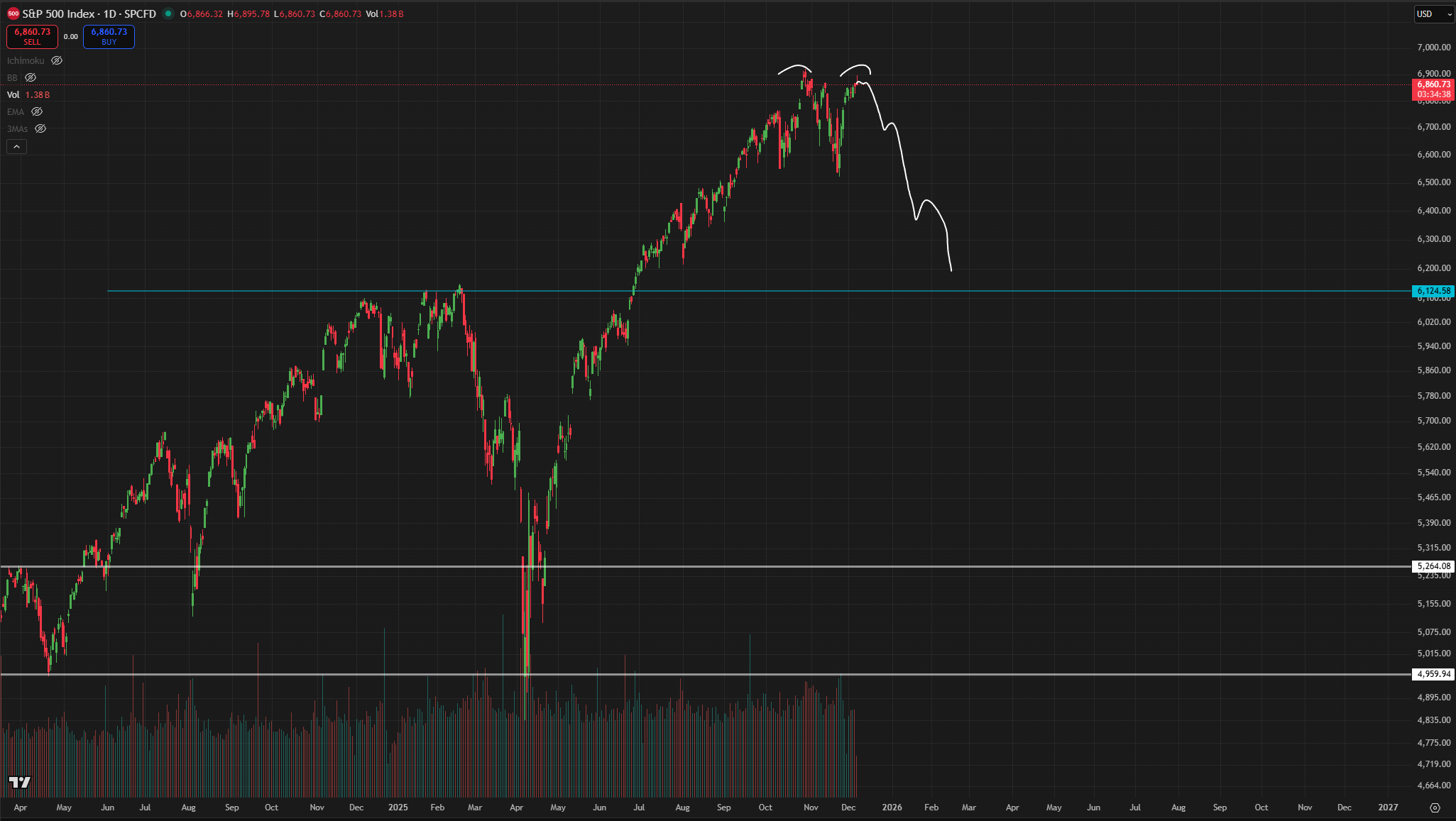 在今日评估中,基于下图标普500指数图表的技术分析,预测比特币可能跌破7.6万美元。