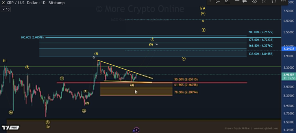 More Crypto Online报道指出,尽管7月出现回调,XRP仍保持宏观上升趋势。分析师强调2.65美元支撑位坚挺,称此次回调为周期中段休整。XRP正在形成下降楔形形态(通常与下跌走势相关),关键阻力位位于3.40美元。
