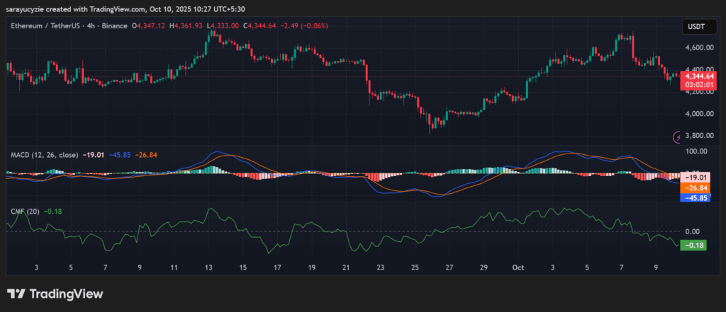 ETH价格图表显示空头压力明显,可能下探至4333美元附近的最初支撑位。若继续向下修正,恐引发死亡交叉,价格或将跌至前期低点4326美元区间,甚至更低。