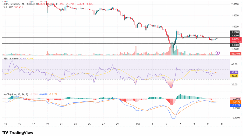 尽管近期出现复苏,XRP价格仍处于1.36至1.40美元的窄幅区间内。相对强弱指数目前处于43的中性位置,而移动平均收敛发散指标显示若市场动能未转变则可能下跌。XRP关键支撑位在1.30美元,阻力位在1.50美元,若突破阻力则可能上探1.60美元。