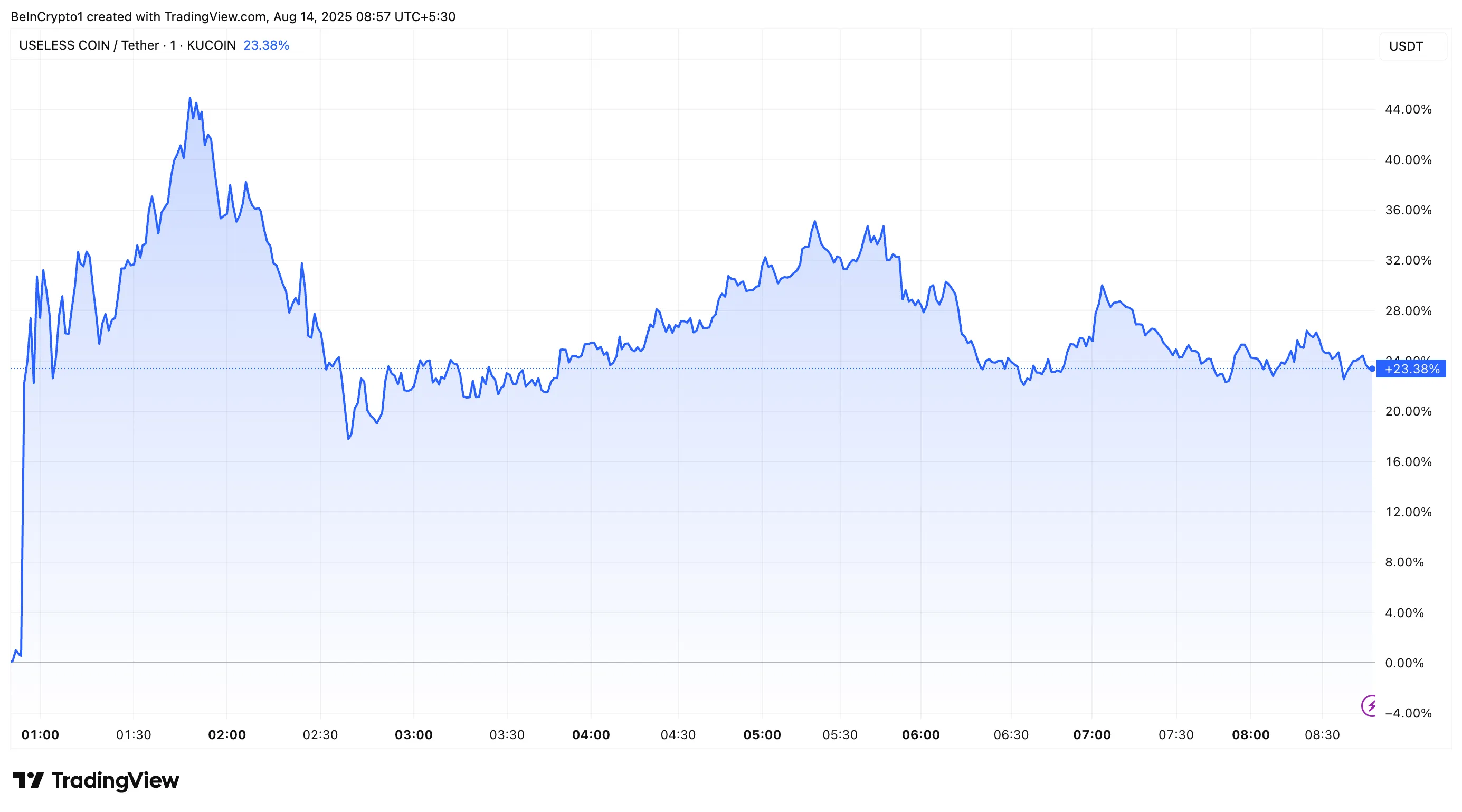这对于上市仅三个月的USELESS而言堪称重要突破。值得注意的是,尽管该项目自称"无用",却迅速获得市场关注。其市值在首发一个月后即突破1亿美元大关,随后在牛市中于7月28日创下0.41美元的历史高点,市值实现翻倍。