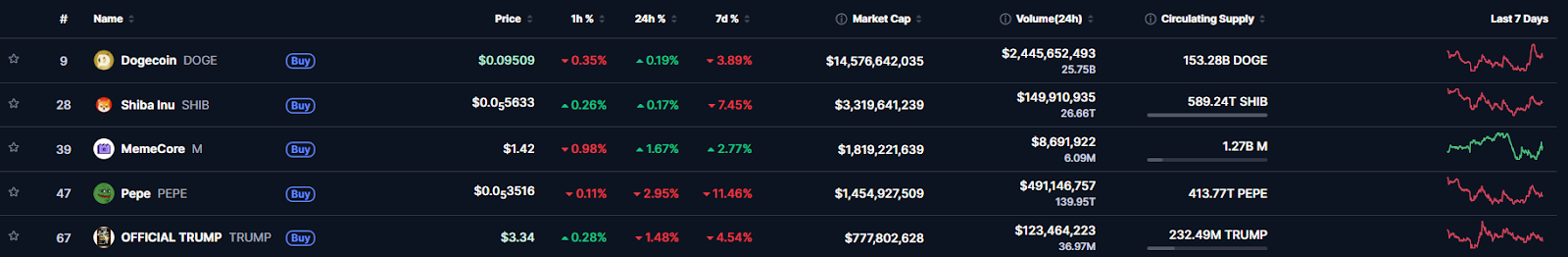 市值前五迷因币: